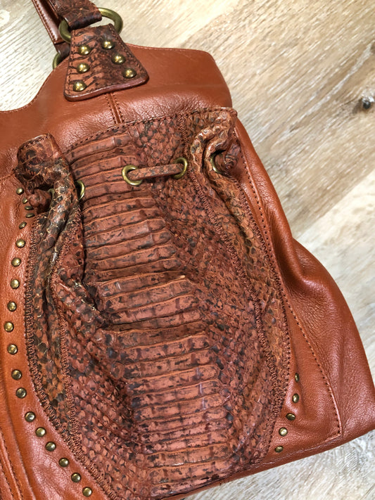 Chi Brown Lambskin and Snakeskin Handbag