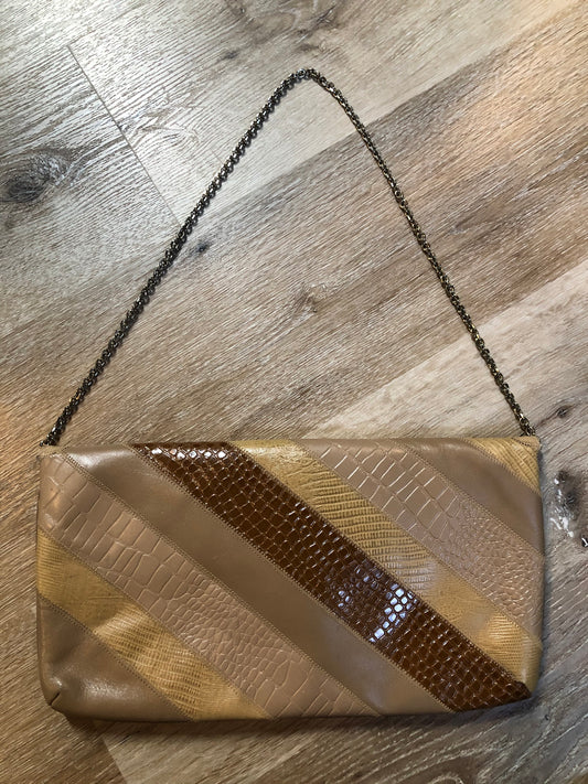 Caprice Leather and Snakeskin Patchwork Envelope Clutch with Chain Strap, Made in USA