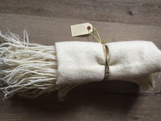 Handmade Beige Wool Blanket with Hot Pink Stitching