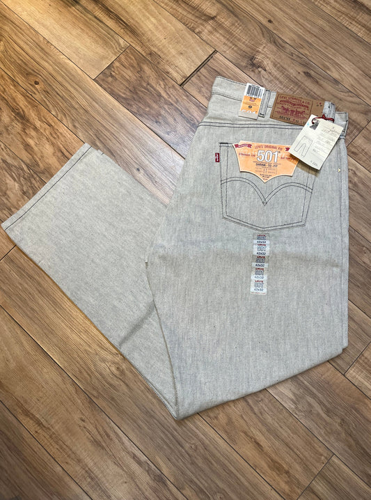 Levi’s 501xx Deadstock Red Tab Rigid Grey Denim Jeans - 42”x32”, Made in Mexico