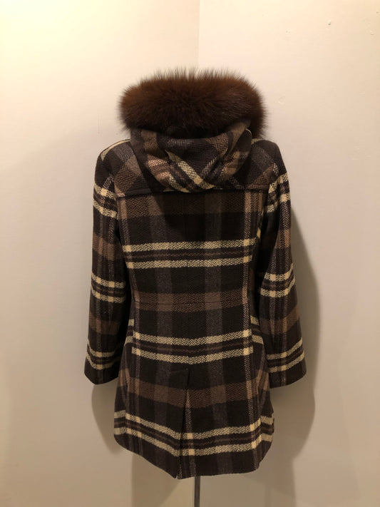 Sashi Brown Plaid Duffle Coat with Fox Fur Trim SOLD