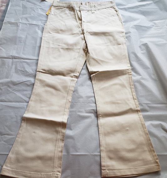 Tee Kay Vintage Deadstock, Made in Canada. Bone White Denim, Bellbottom Jeans. NWT 29" x 29"