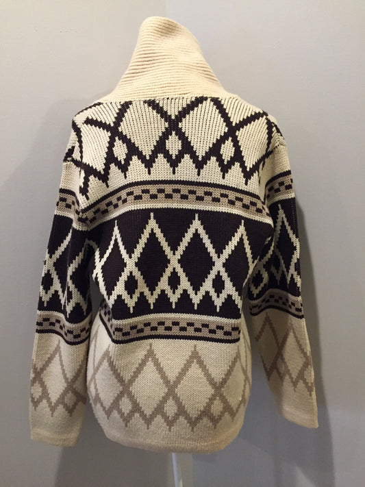 Tundra Cream/ Brown Wool Shawl Collar Cardigan, Made in Canada