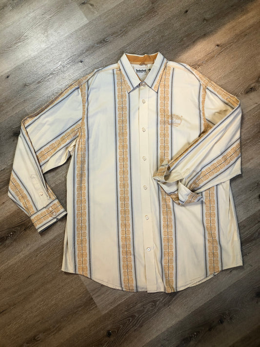 Timberland Cotton woven small motif ochre / ivory Button Up Shirt SOLD