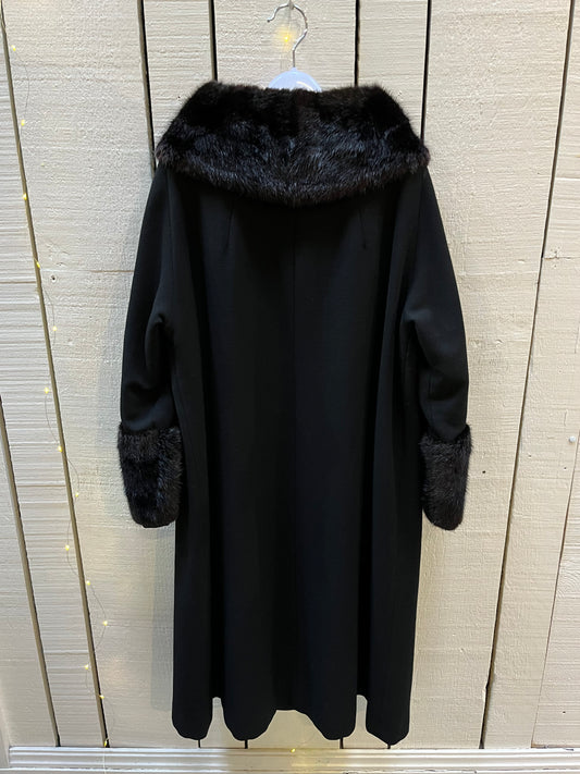 Vintage 1940’s Black Wool Coat with Dark Brown Fur Trim, Chest 44” SOLD