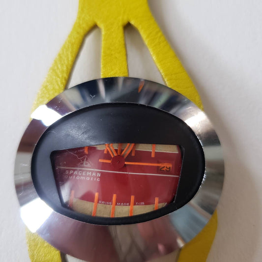 Very Rare 70's vintage Swiss MK 1 Spaceman wrist watch. Designed by Andre le Marquand. 25 jewel automatic Swiss movement