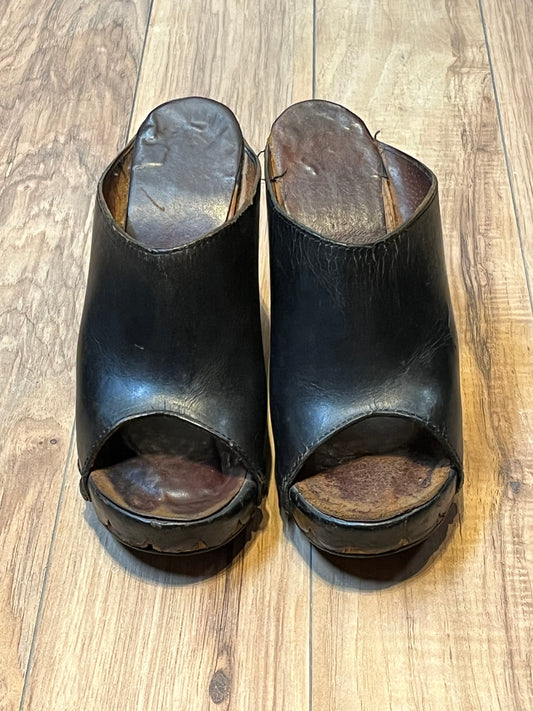 Vintage 1960s Black Tacked Clogs with Wooden Heel, Size US Womens 7, EUR 38 SOLD