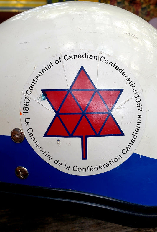 Vintage 1960's Buco Half Helmet with Blue Translucent Visor. Royal Canadian Corps of Signals. Centennial 1967.