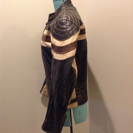 Vintage CCM Canada Black, White and Brown Leather Moto JacketRegular price $325.00 CADRegular priceUnit price / per-