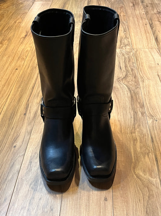 Vintage Frye Black Harness Boot, Made in USA, Size US Womens 10