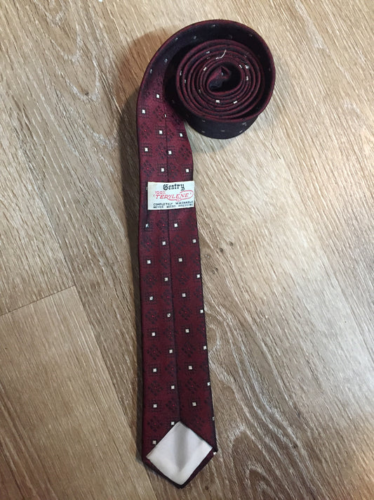 Vintage Gentry Burgundy, White and Black Pattern Skinny Tie SOLD