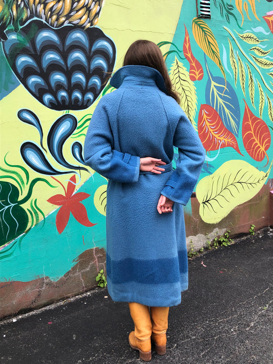 Vintage Hudson's Bay Company Blue Point Blanket Coat, Made in Canada, Size Small