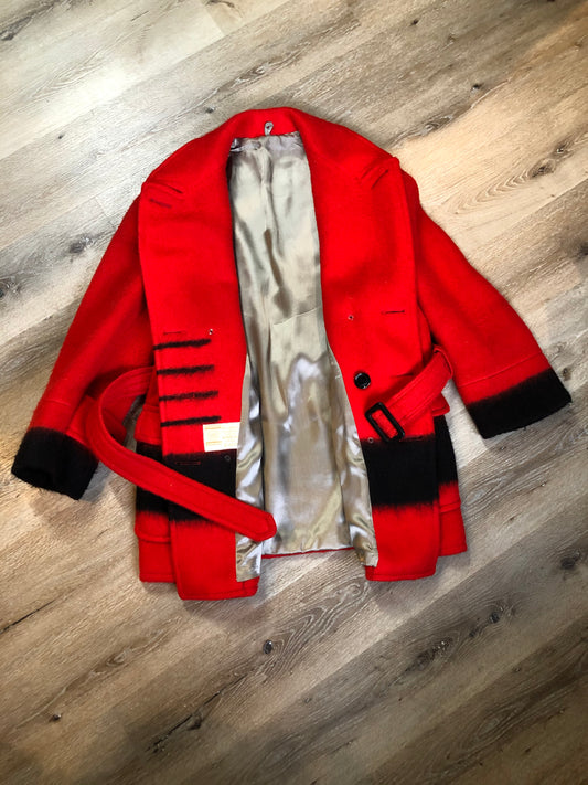 Vintage Hudson's Bay Company Red and Black Point Blanket Wool Coat, Made in Canada, Chest 38” SOLD