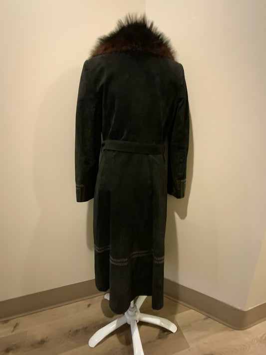 Vintage Jeno De Paris Black Suede Full Length Coat, Made in Canada