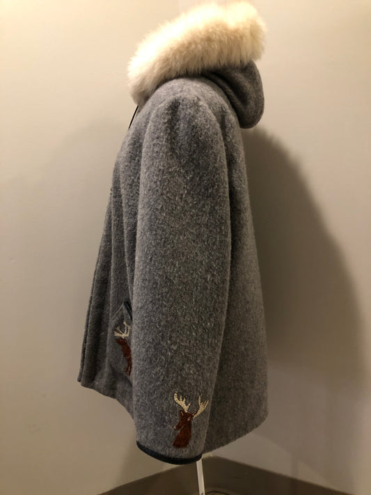 Vintage James Bay Grey Northern Parka with Deer Motif, Made in Canada, SOLD