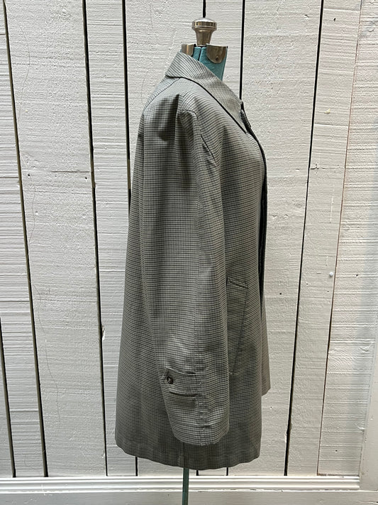 Vintage London Fog Grey Houndstooth Maincoat with Removable Lining, Made in USA, Size 38 Short