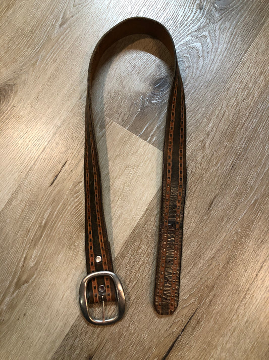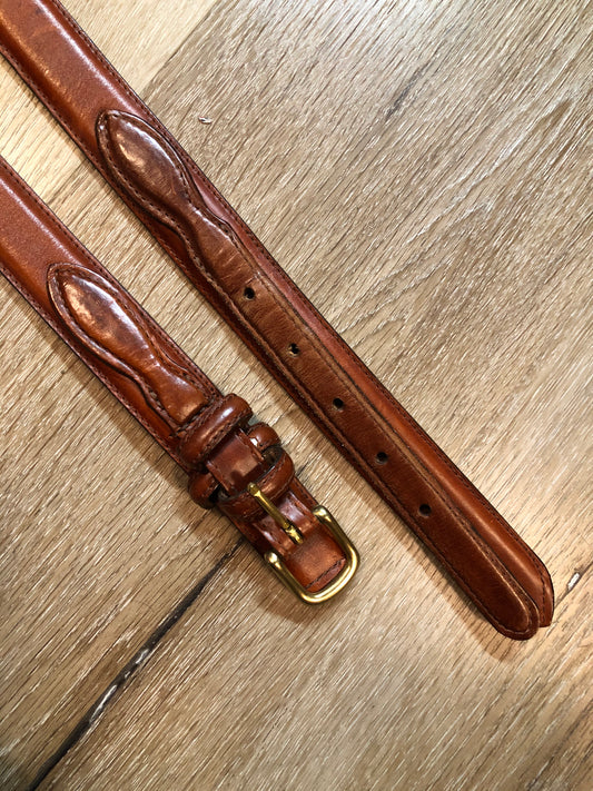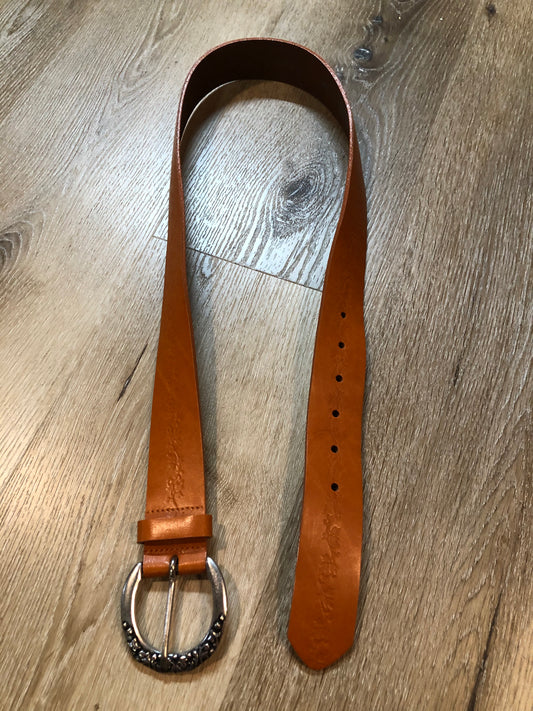 Brown Leather Belt with Floral Tooling, Made in Canada