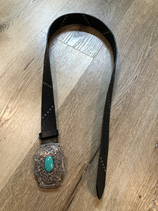Black Leather Butterfly Belt with Turquoise Stone, SOLD