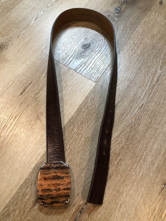 Dark Brown Textured Belt with Marble Buckle SOLD