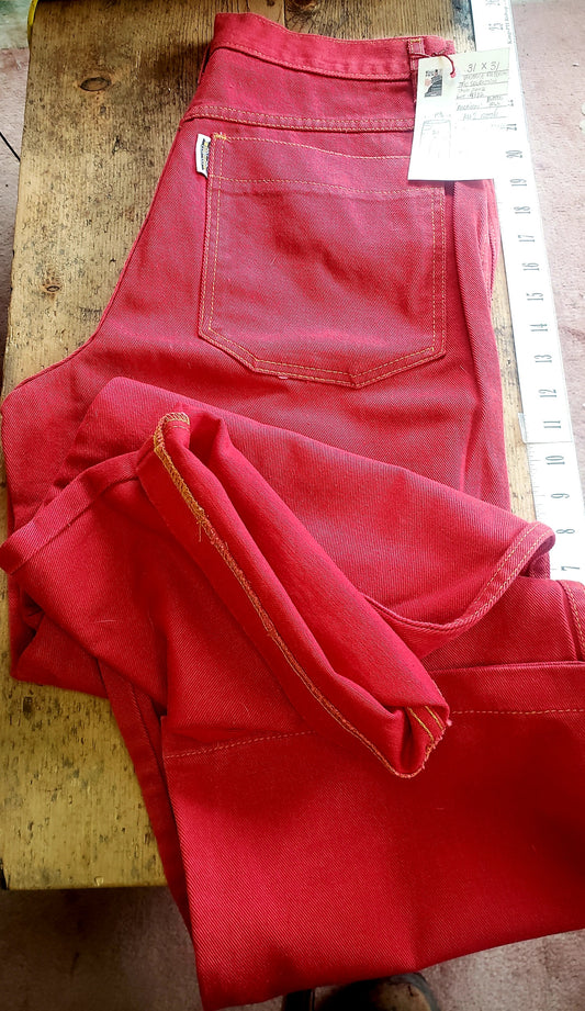 Vintage Rare 80's Deadstock BTB Back to Basics Jeans 31"x31" High Waist Wide Leg Red Denim. Made in Canada