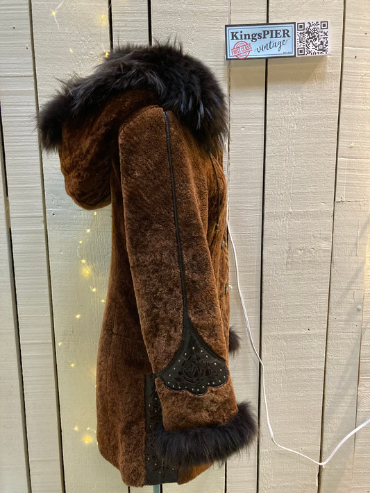 Vintage Hide Society Brown Shearling Coat with Hood, Made in Canada, Size Medium SOLD