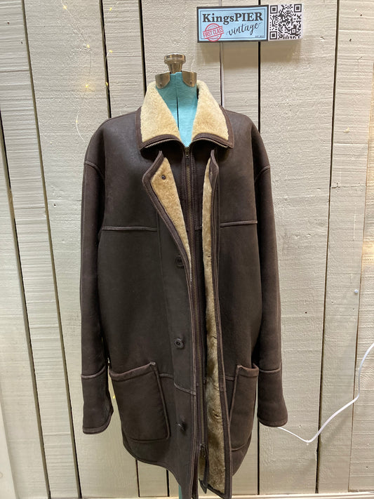 Vintage Brown Shearling Coat, Size 46”