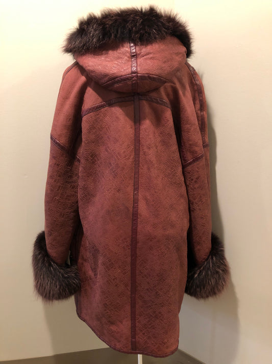 Vintage Wine Shearling Coat with Fox PENDING