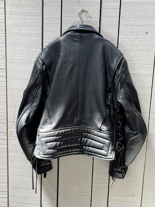 Screamin’ Eagle Black Leather Moto Jacket, Size Large