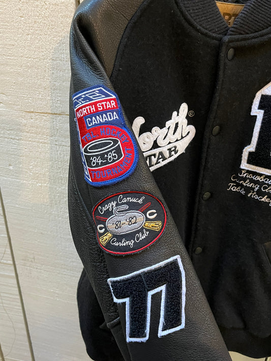 Vintage North Star Black Varsity Jacket, Made in Canada, Size Medium