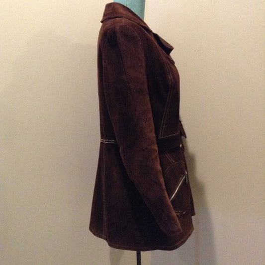 Vintage Sylvia Mark Brown Suede Belted Jacket, Made in Canada