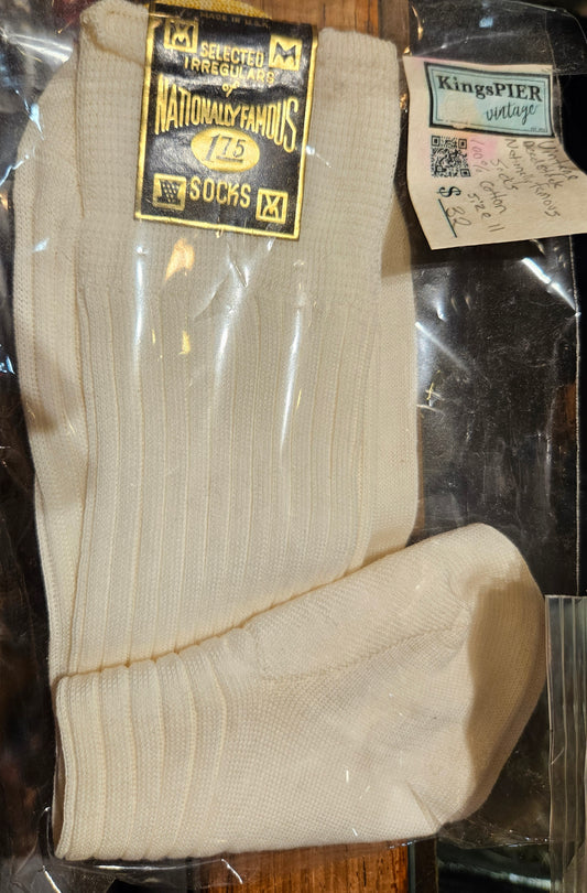 Deadstock Vintage Nationally Famous Cotton Mens White Dress Socks. Made in USA