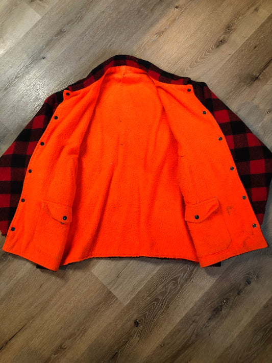 Vintage Reversible Codet Red & Black Buffalo Wool Plaid / Blaze Orange Hunting Jacket Made in Canada SOLD
