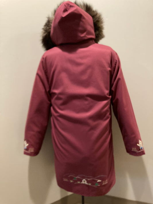 Vintage Northern Sun Pink Wool Parka with Goose Motif and Storm Shell, Made in Canada