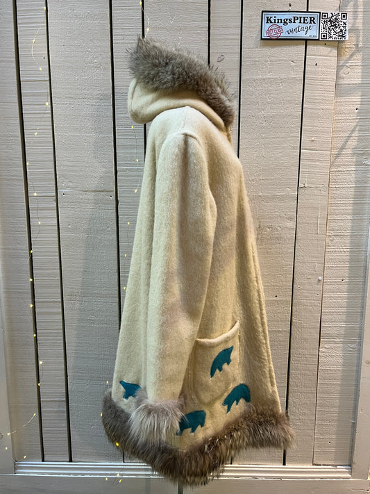 Vintage White Wool Northern Parka, Indigenous made, Chest 48” SOLD