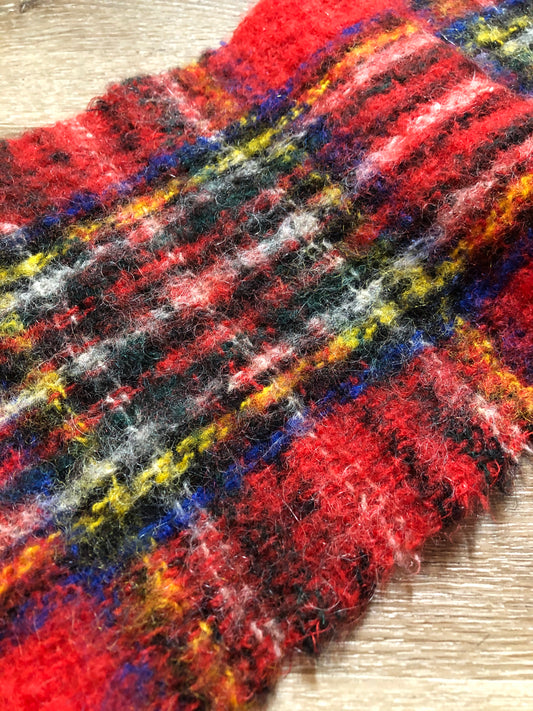 Vintage Red Plaid Mohair Blend Scarf SOLD