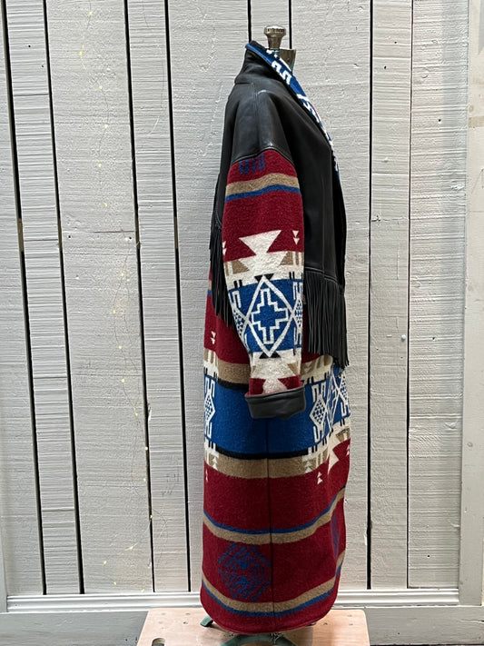 Vintage TA Branded Southwest Style Wool Coat with Deerskin Fringe, Chest 48” SOLD