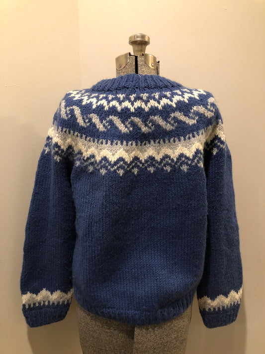 Hand Knit Blue, Grey and White Lopi Style Sweater SOLD