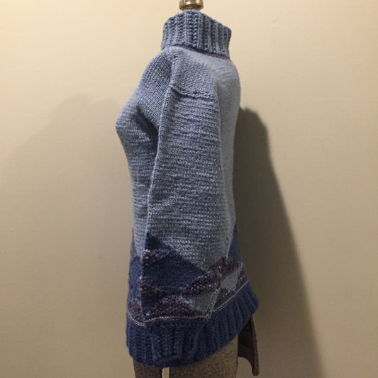 Hand Knit Blue and Purple 100% Wool Sweater, Made in Canada