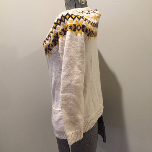Hand Knit Cream, Brown and Yellow Lopi Cardigan, Made in Nova Scotia