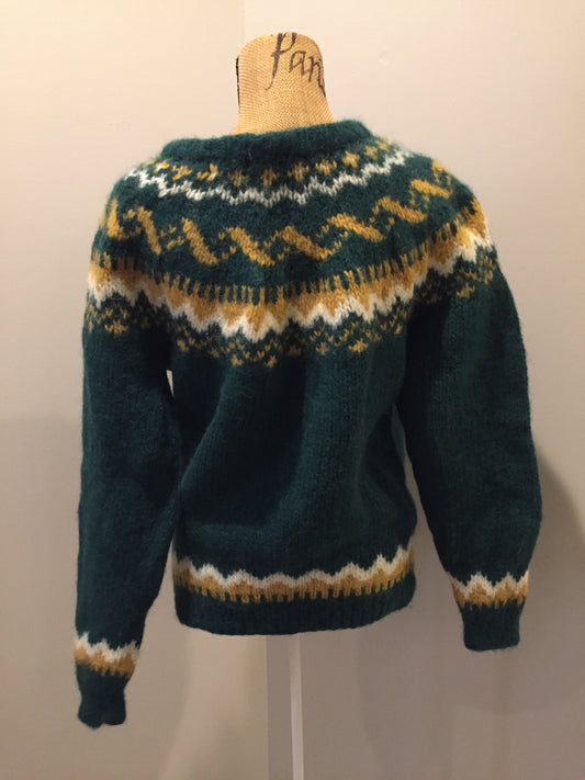 Hand Knit Green Lopi Style Wool Sweater, SOLD