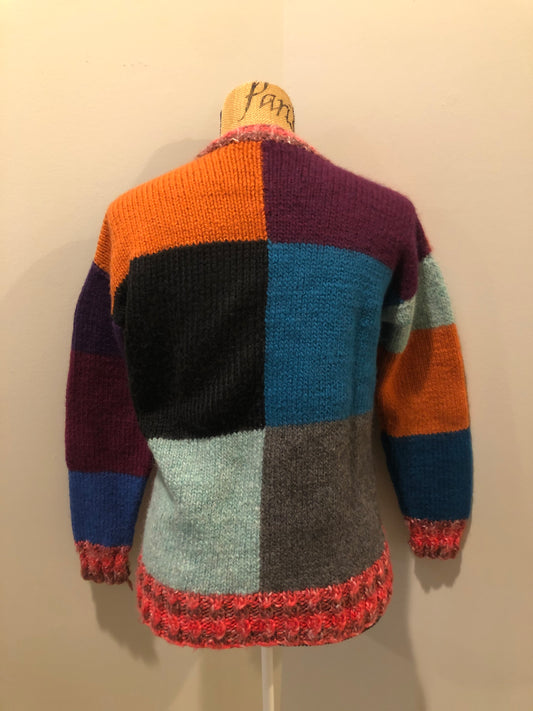 Hand Knit Multi-colour Patch-Work Cardigan, Made in Canada