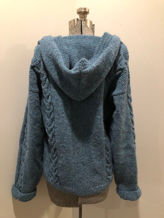 Hand Knit Teal Hooded Wool Sweater SOLD