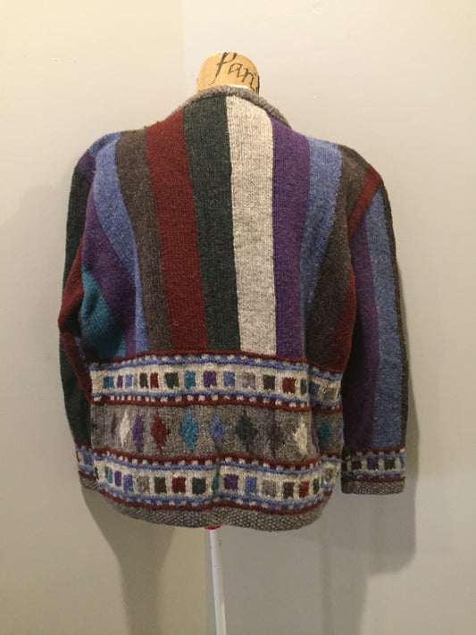 Preshrunk Hand Knit Blue/ White Lopi Cardigan