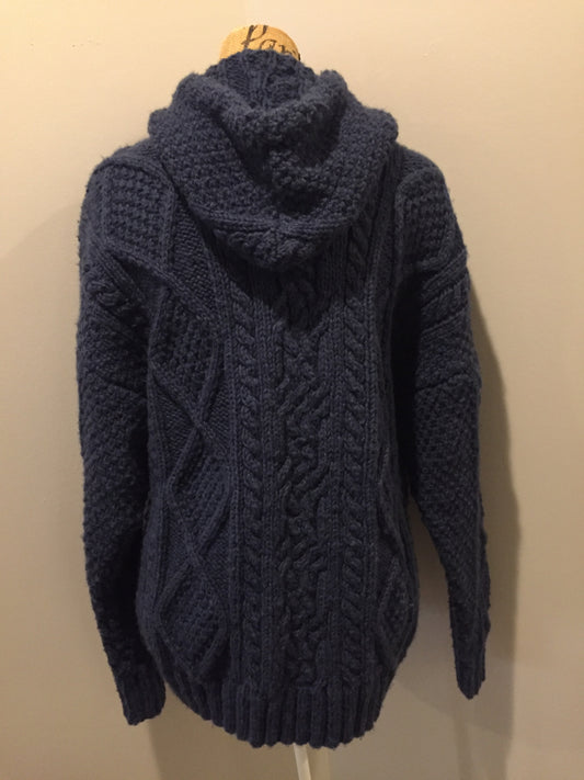 Vintage Romney Dark Blue Hooded Wool Cardigan, SOLD