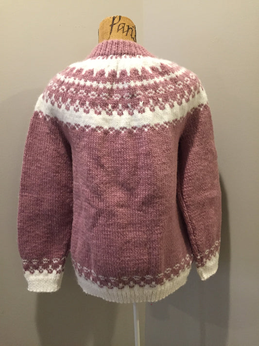 Hand knit Pink/ White Lopi Style Cardigan SOLD