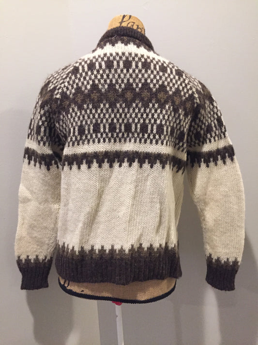 Vintage Hand Knit Brown/ White Wool Cardigan