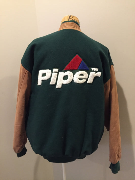 Vintage Piper Green and Brown Varsity Jacket, Made in Canada