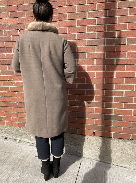 Vintage Monarch Wool Coat with ¾ Sleeve and Fur Trimmed Collar