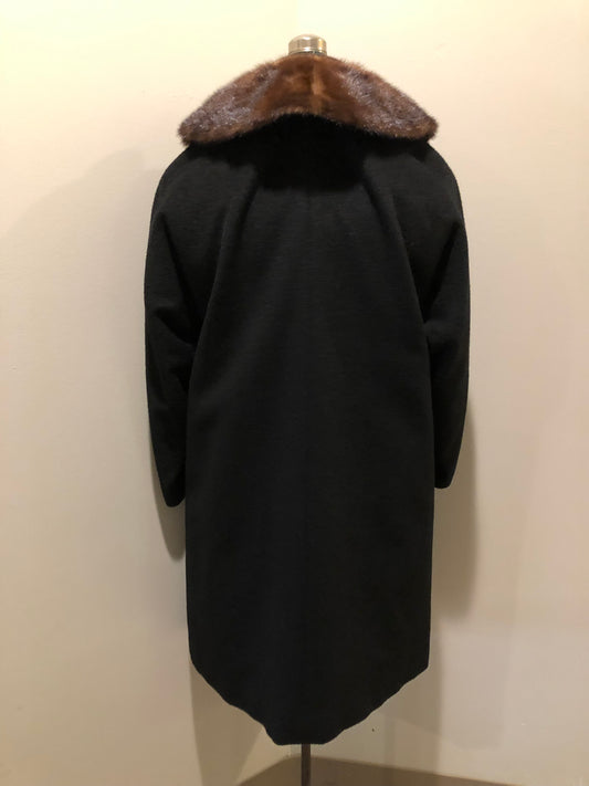 Vintage Modern Deb Black Wool Coat with Fur Collar