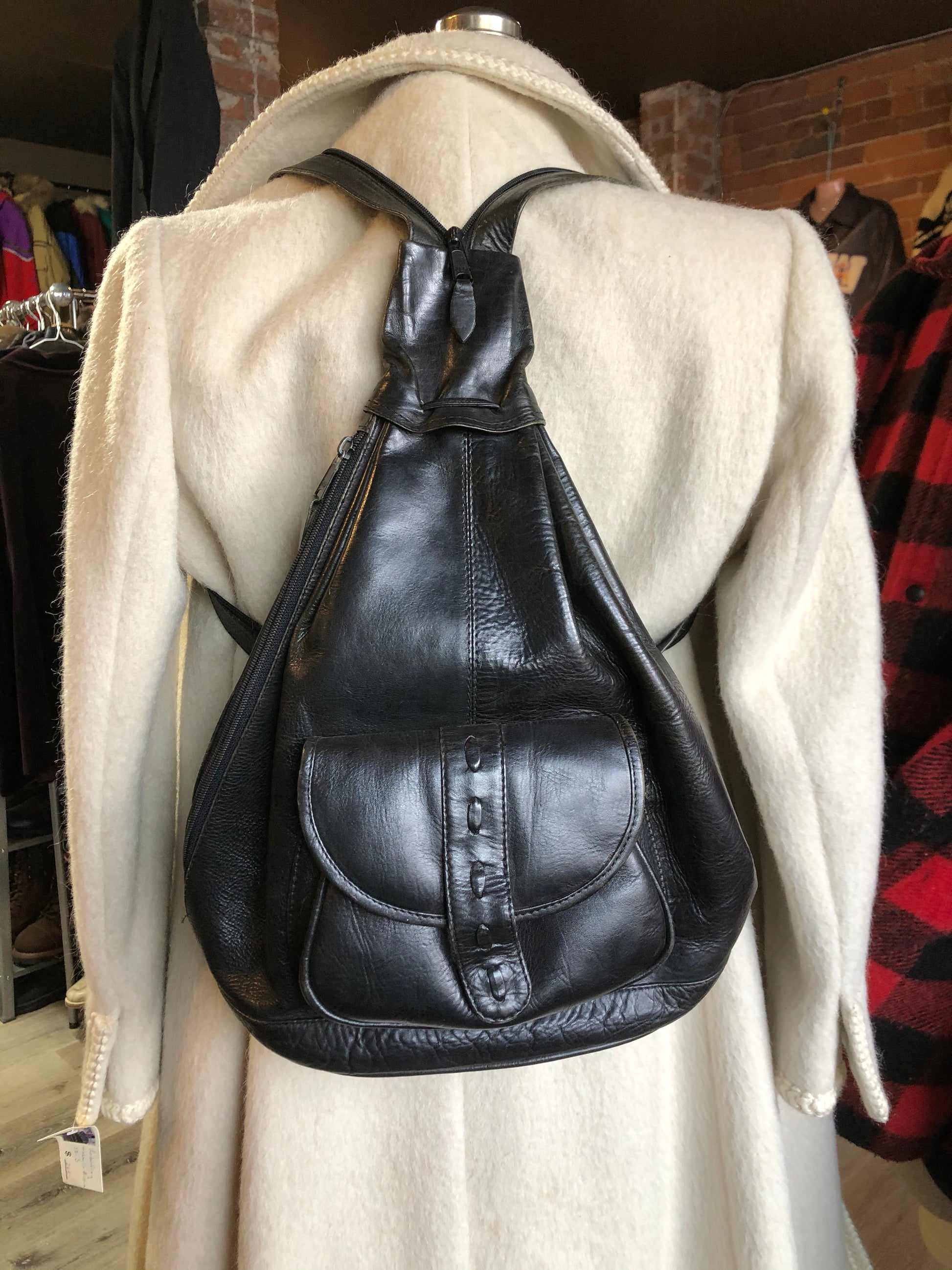 Vintage Jane Shilton Black Leather Backpack Knapsack, Made in Canada SOLD